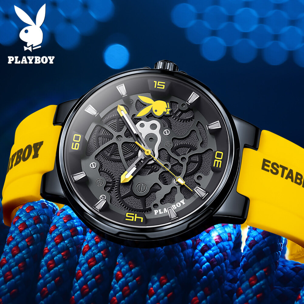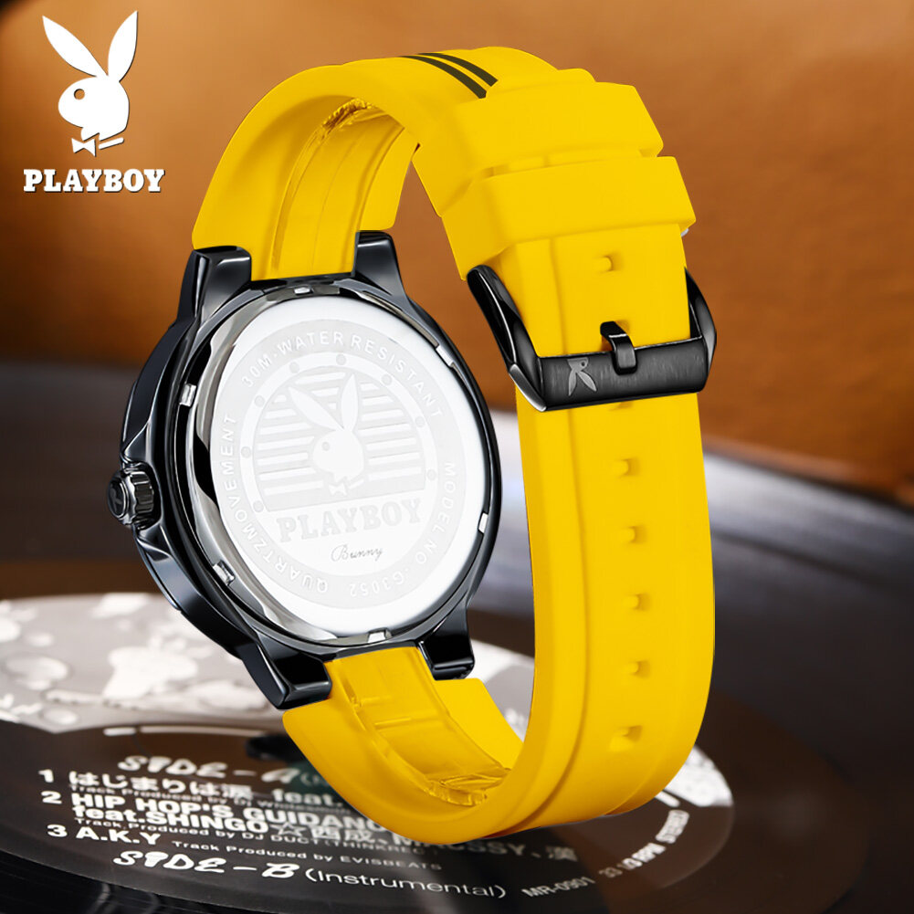 PLAYBOY 2023 New Watch For Men Original Waterproof Quartz Watch Luminous Yellow Silicone strap Fashion Mens Watch