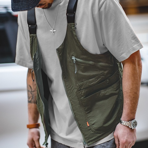 Maden workwear Japanese Vintage Multi-Pocket Sleeveless Nylon Vest Outdoor Functional Dual-Use Shoulder Bag Jacket Men