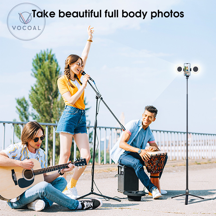 Vocoal Wireless Bluetooth Selfie Stick Tripod With Fill Light Selfie Stick Tripod with Wireless Remote Mini Extendable Selfie Stick 360° Rotation Phone Stand Holder Aluminum Alloy Selfie Stick