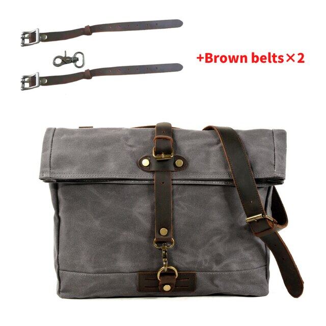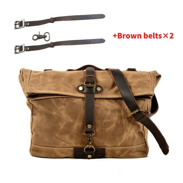 Vintage Men Motorcycle Backpack Waterproof Canvas Leather Retro Rear Seat Bag Motocross Saddlebags Biker Se Bag Brown