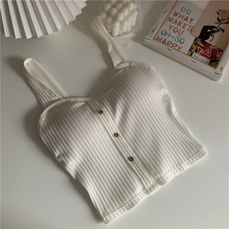 Sonkpuel Women Summer Elastic Tank Top Crop Camisole Sleeveless T Shirt Spaghetti Vest Knitted Camis Female Vest Tops White Black