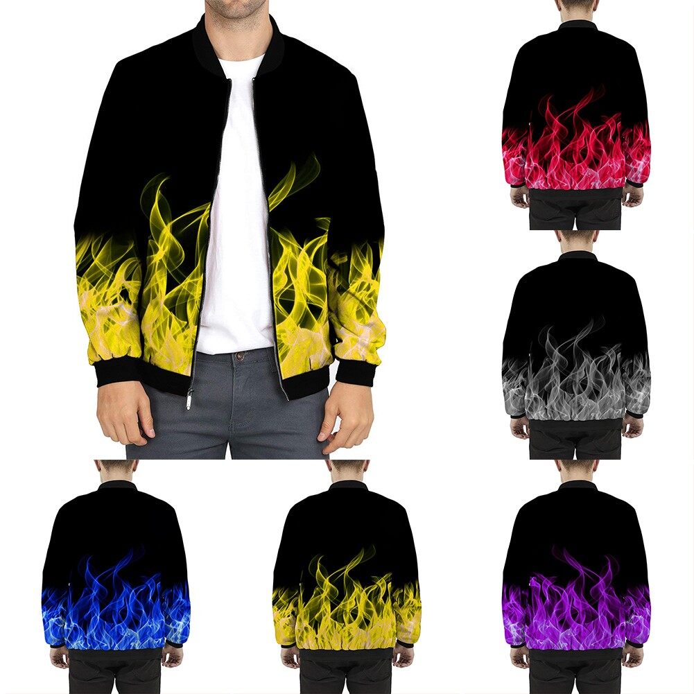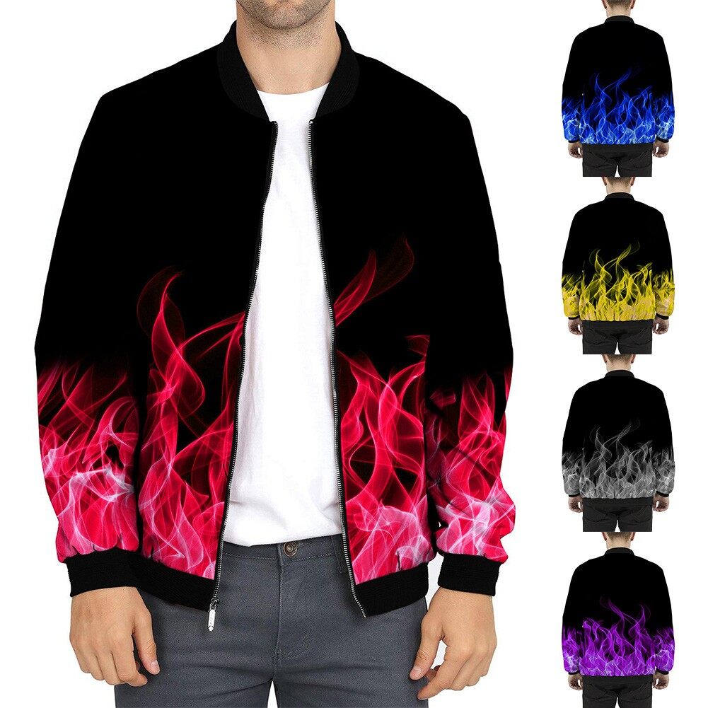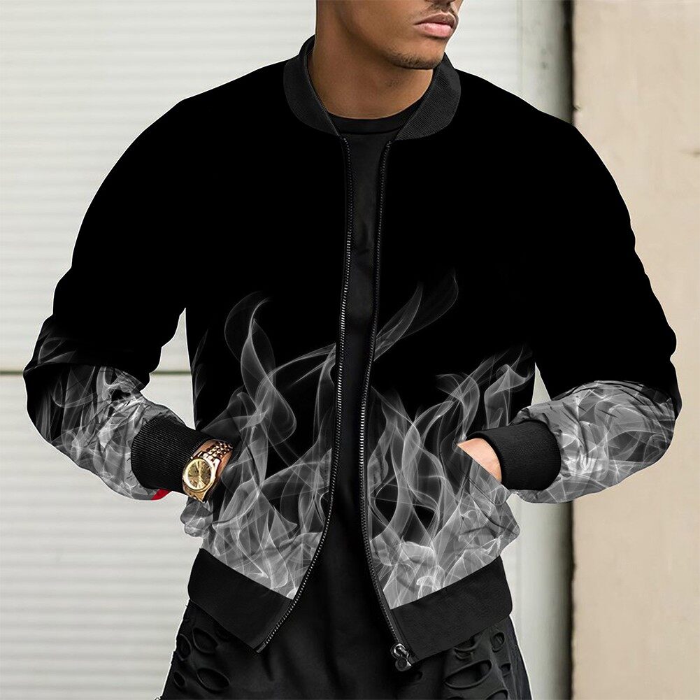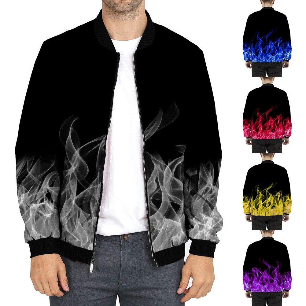 * Item Description:️Fashion Men Casual Loose Collarless Print Zip Bomber Long Sleeve Pocket Coat Jacket Outwear Slim Tops 3D Print