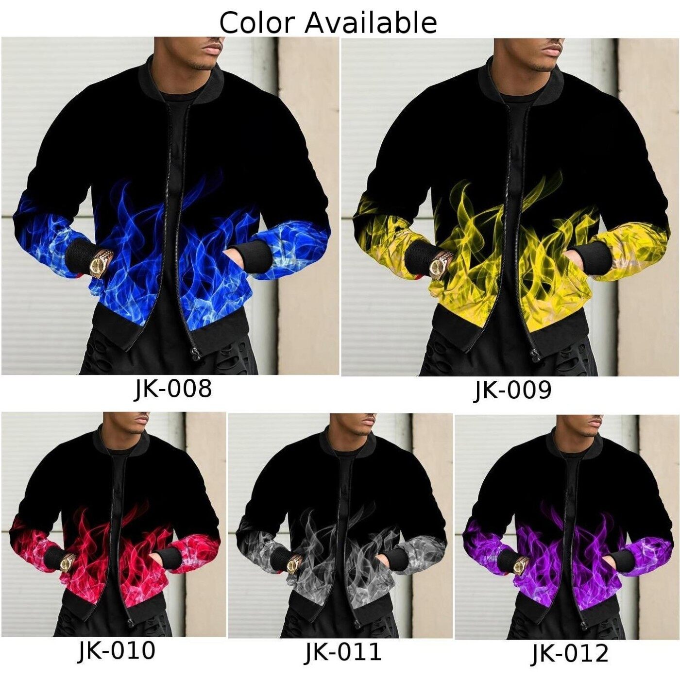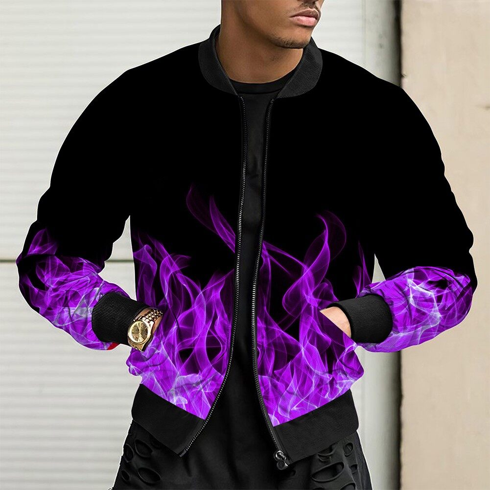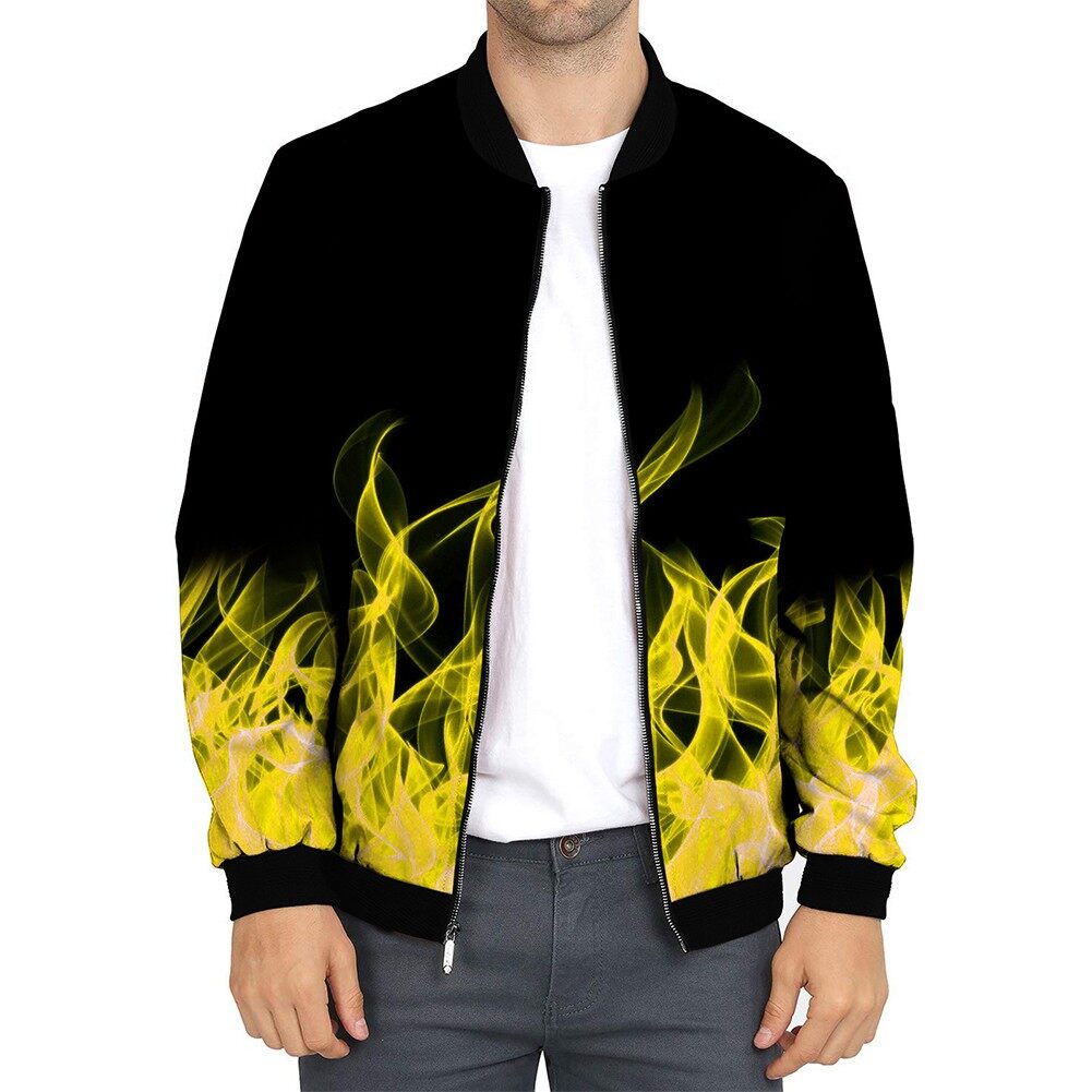 * Item Description:️Fashion Men Casual Loose Collarless Print Zip Bomber Long Sleeve Pocket Coat Jacket Outwear Slim Tops 3D Print