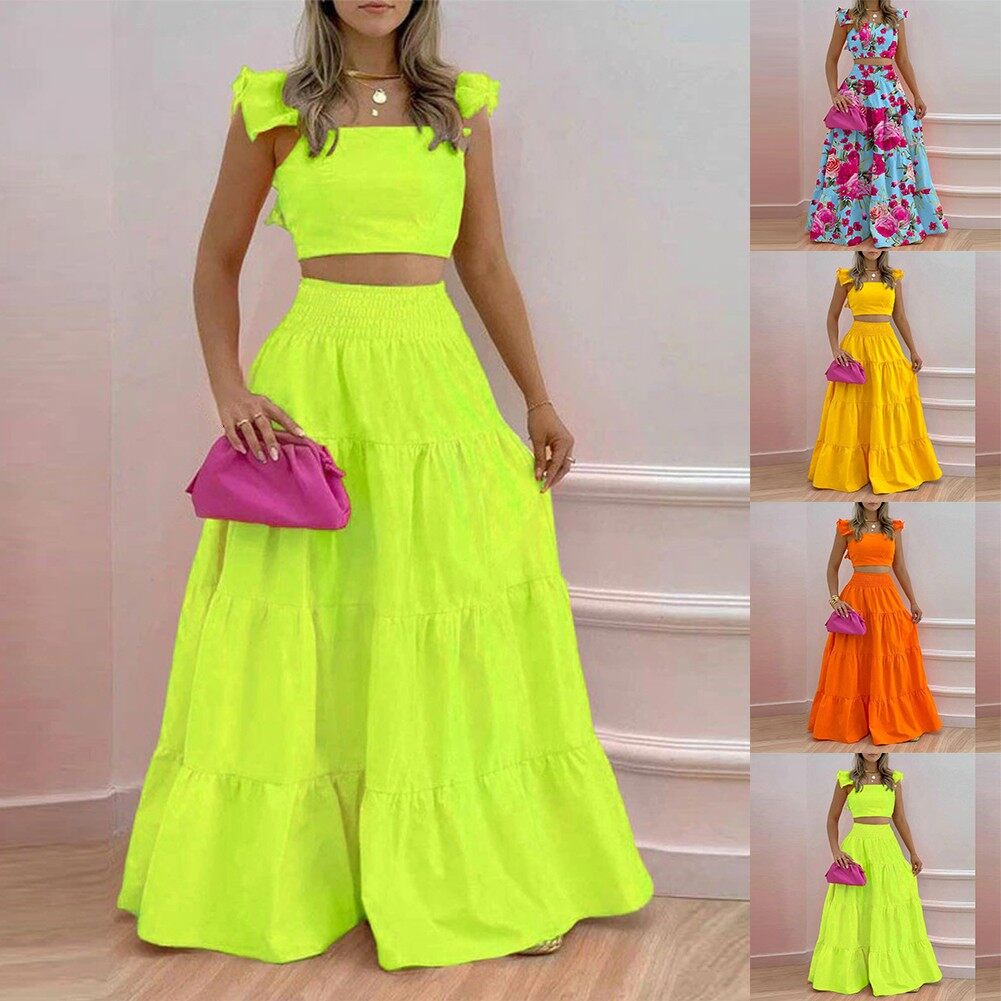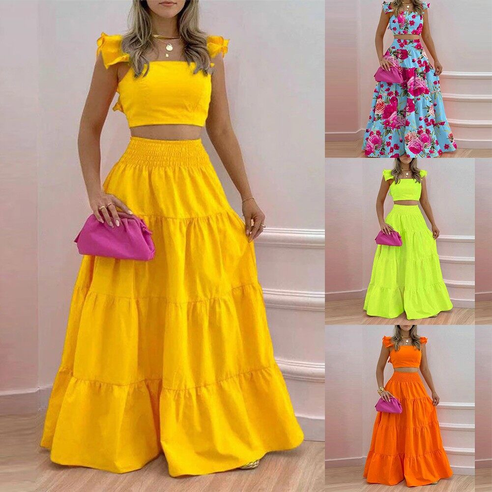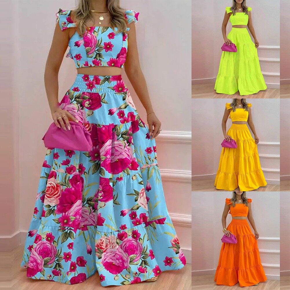 Summer Womens Dress 2 Piece Set Beach Bohemia Holiday Long Matching Sets