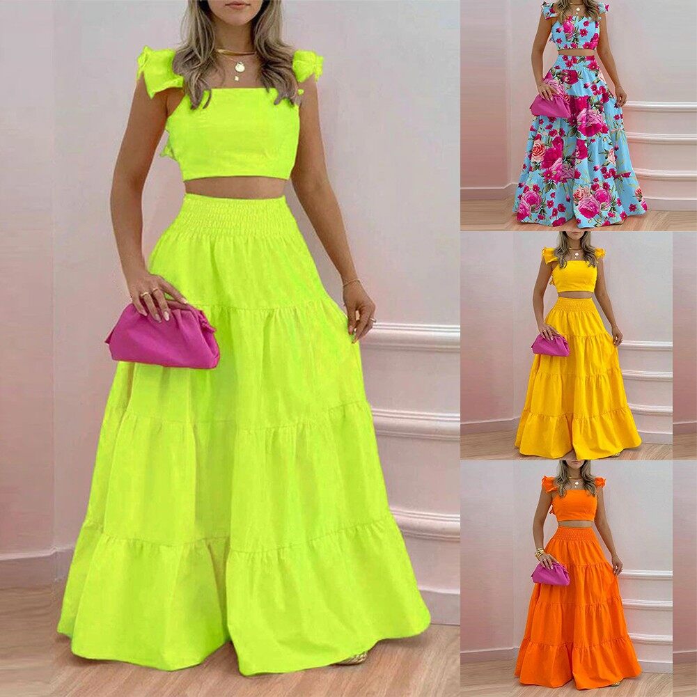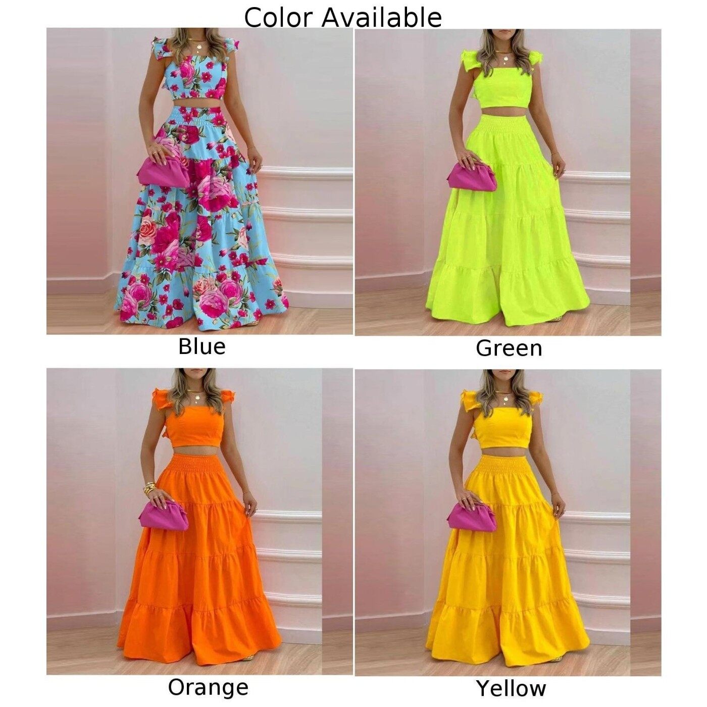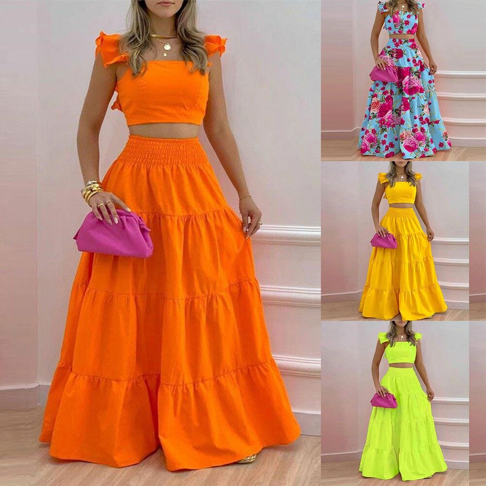 * Item Features:Summer 2 Piece Set ,Women Crop Top + High Waist Long Skirt Set ,Long Matching Sets Bohemia Sexy Beach Dresses Set