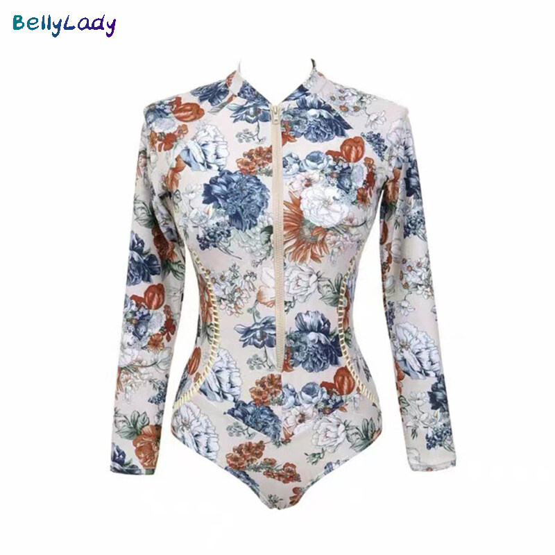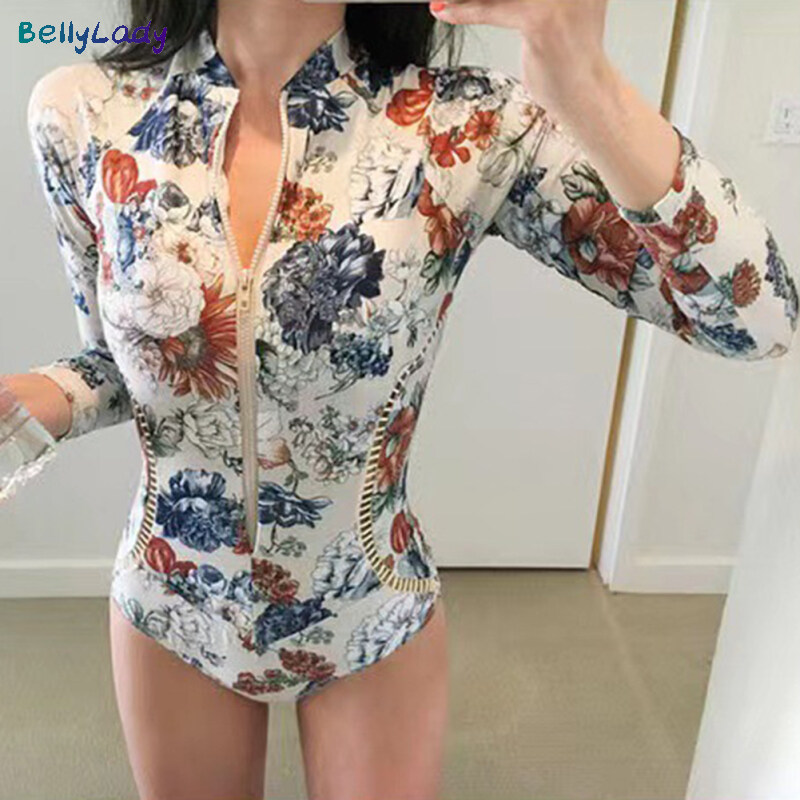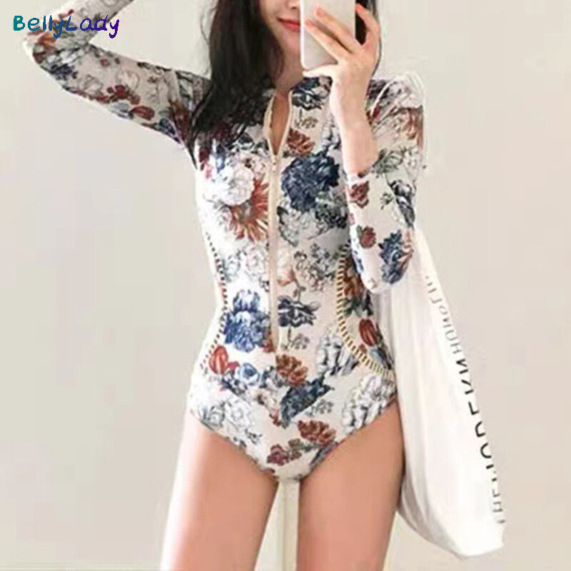 Women Long Sleeves Swimsuit Elegant Printing Sunscreen Quick-drying One-piece Swimwear For Hot Spring