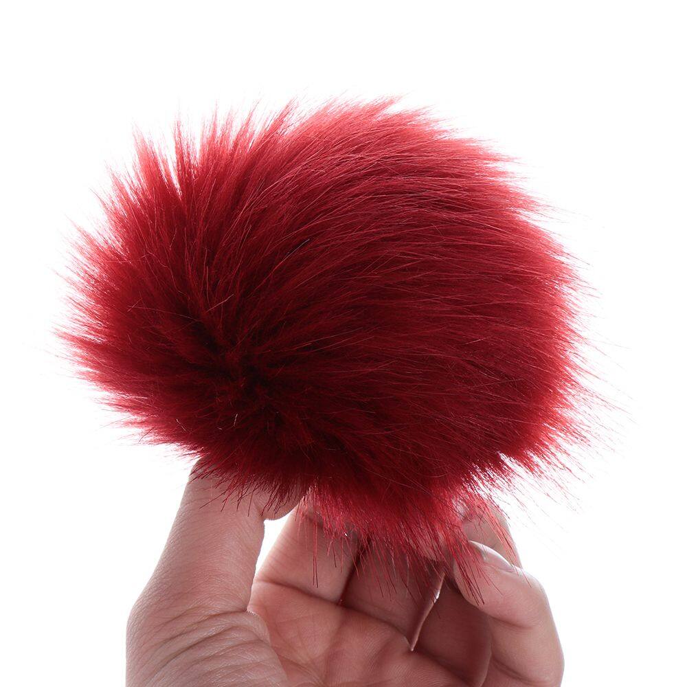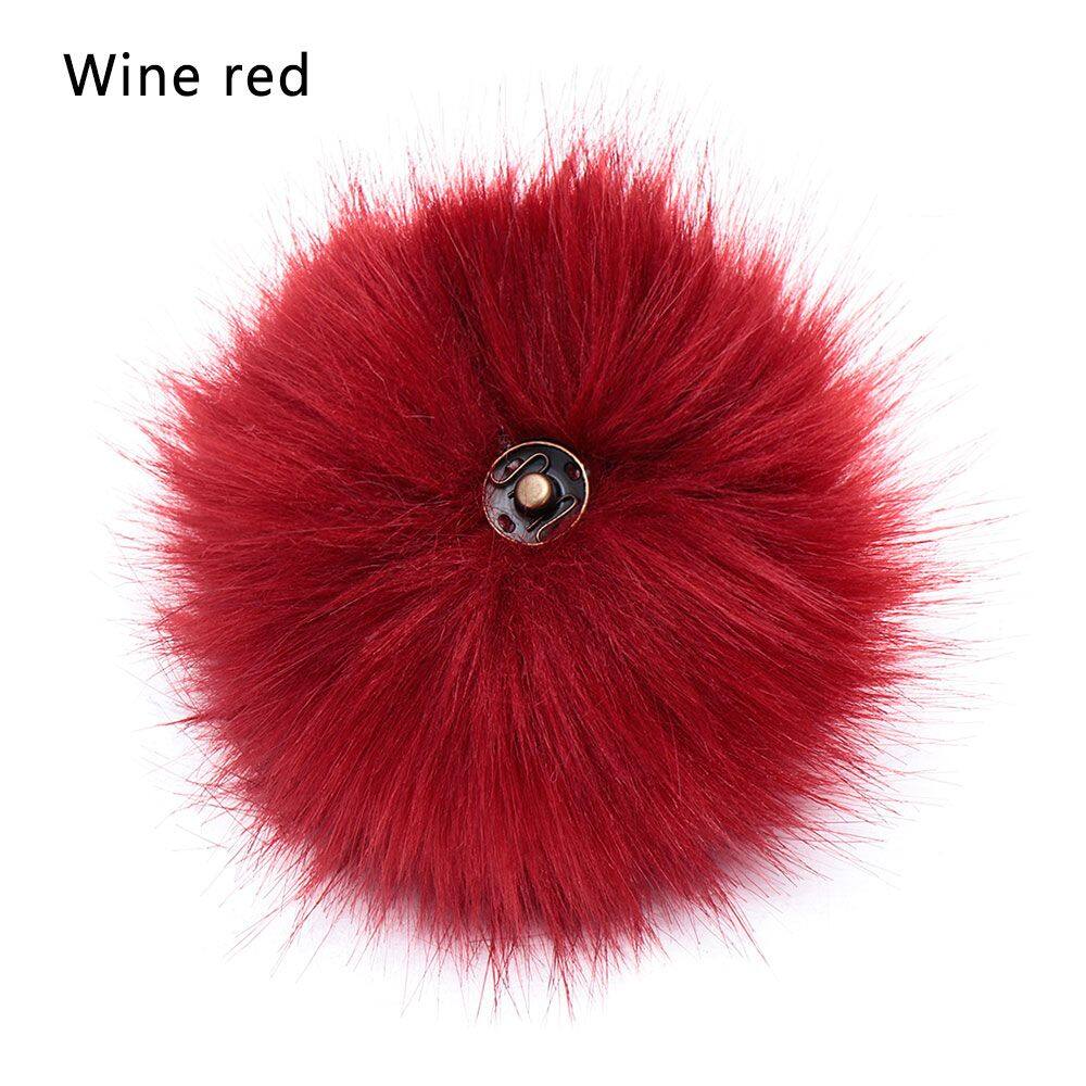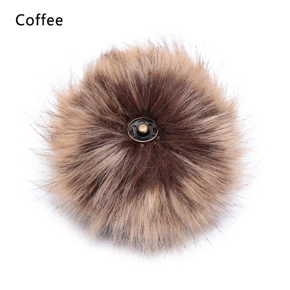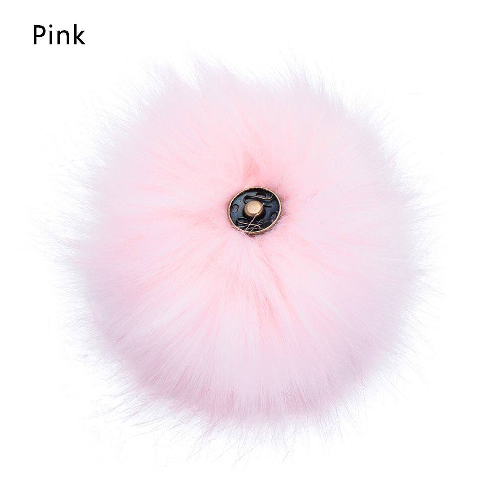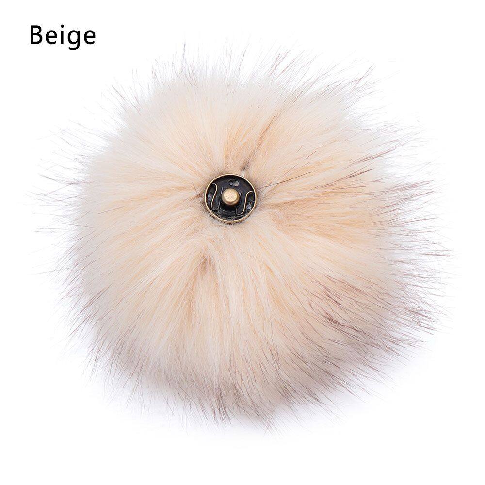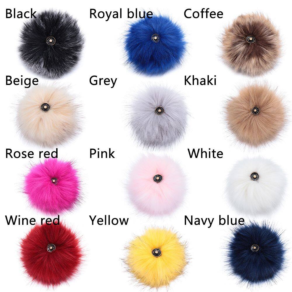 QRWKWF 12cm Buckle Faux Fox Fur Women's Fashion Knitted Cap Hats Decor Hairball Pompom Ball Bags Accessories