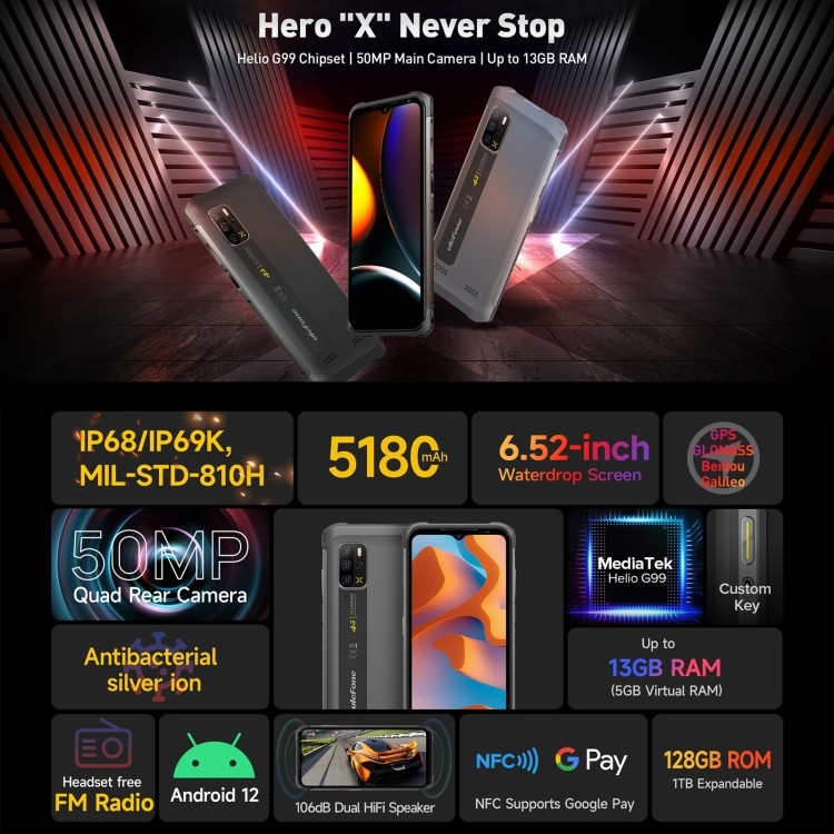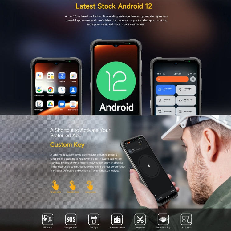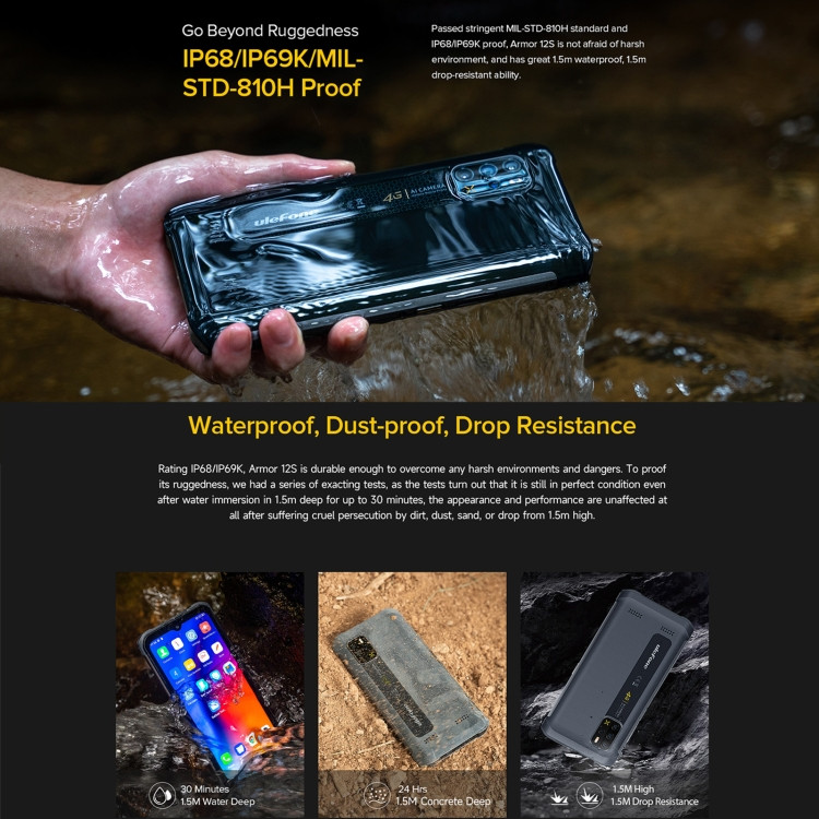 Ulefone Armor 12S features a 6.52 inch LCD display with a resolution of 720 x 1600 pixels so that you can have vivid and clear visuals.