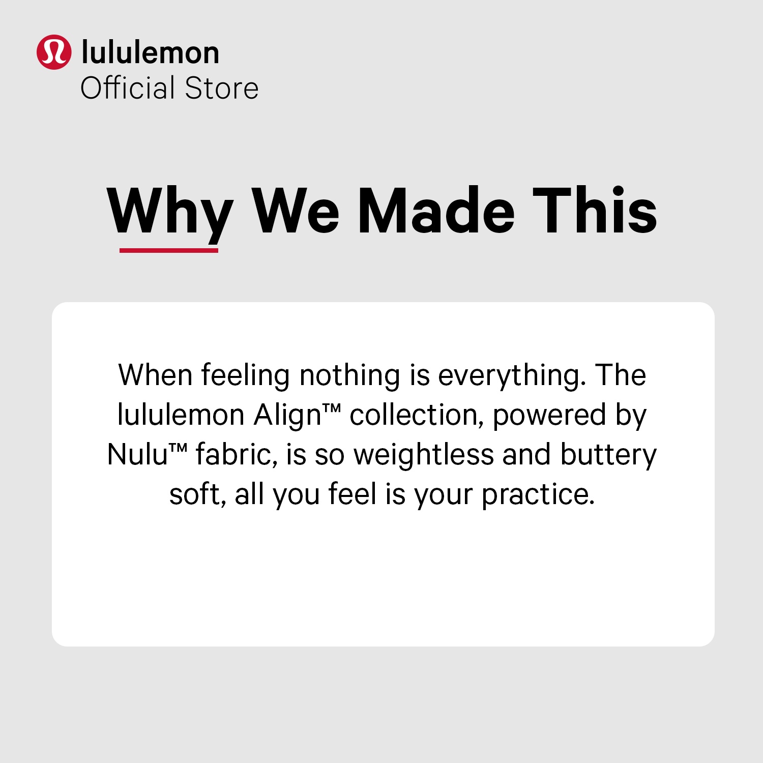 Why We Made It When feeling nothing is everything. The lululemon Align™ collection, powered by Nulu™ fabric, is so weightless and buttery soft, all you feel is your practice. Fit Details