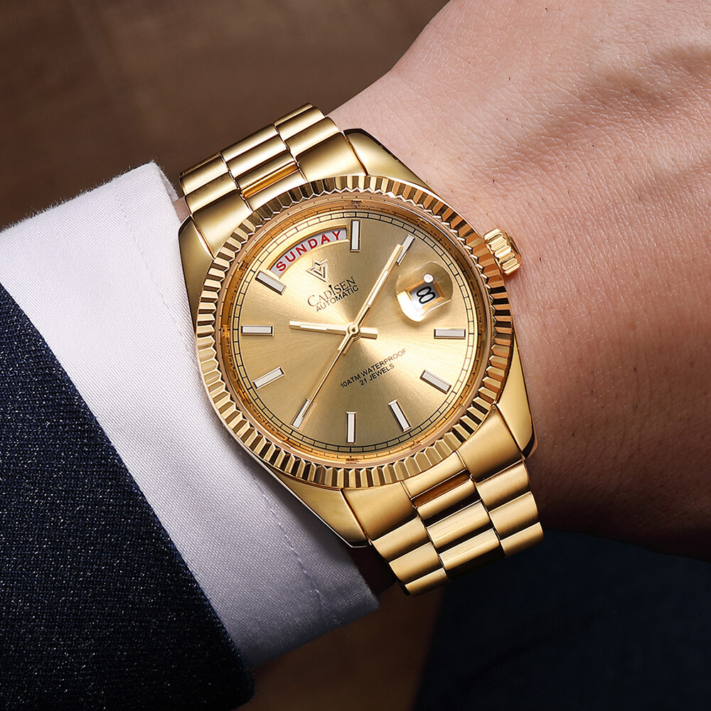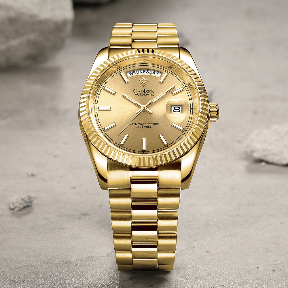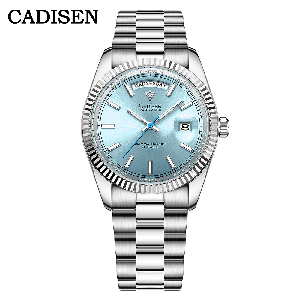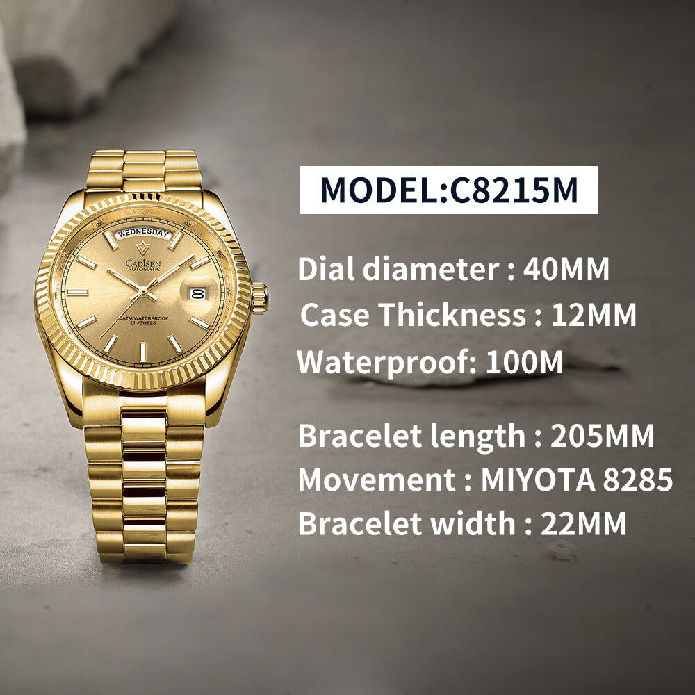 CADISEN Original DD40 Japan MIYOTA 8285 Men Watch Ice Blue Automatic Luxury Gold Stainless Steel Mechanical Waterproof AR Sapphire Glass C8215