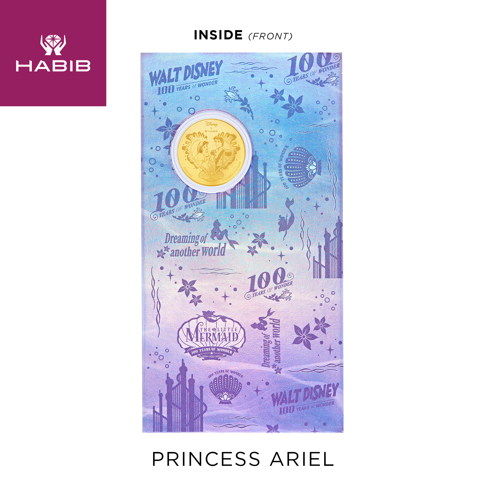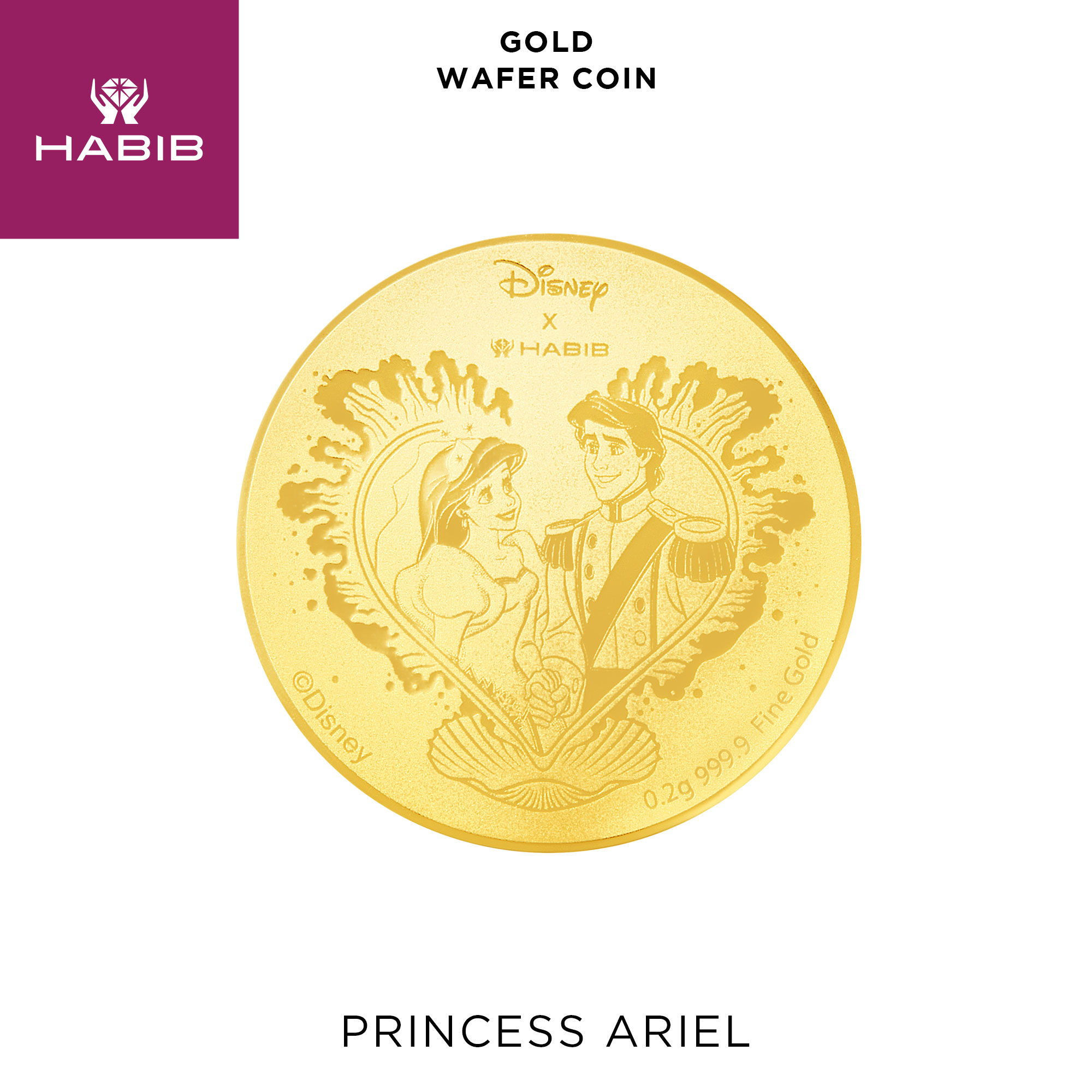 Disney x HABIB Disney100 Princess Ariel Gold Wafer Coin, 999.9 Gold (0.20G)