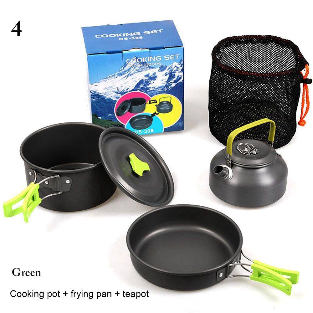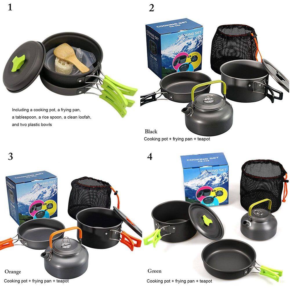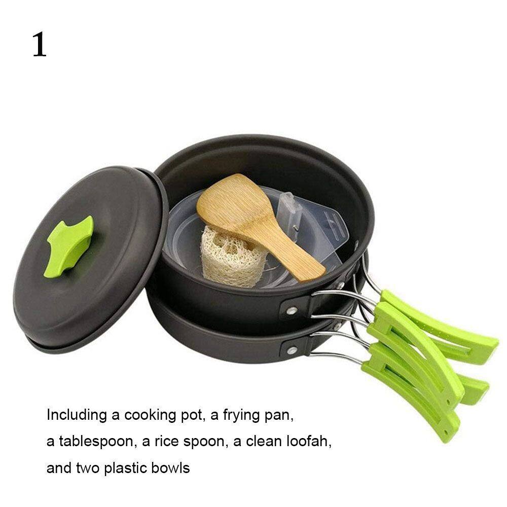 Style 1: A cooking pot, a frying pan, a tablespoon, a rice spoon, a clean loofah, and two plastic bowls