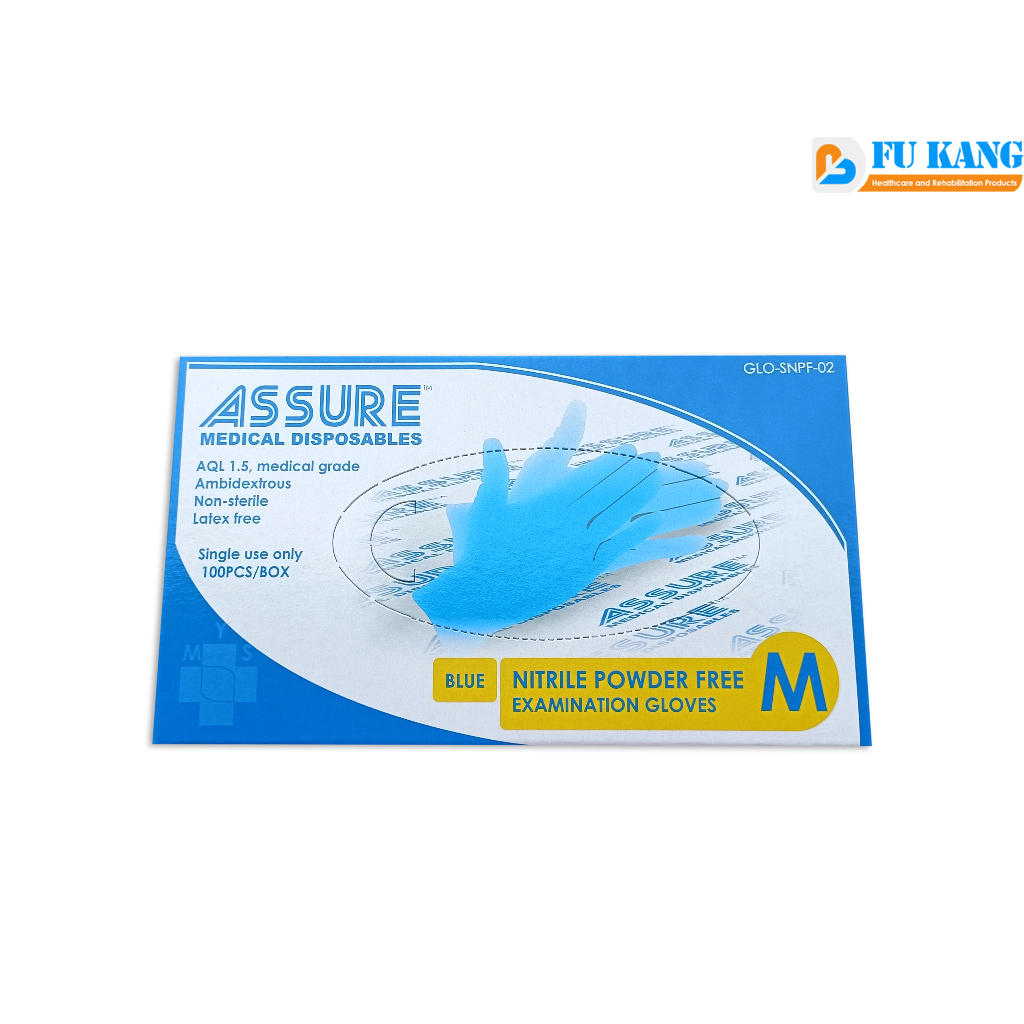 ASSURE Medical Disposable Nitrile Powder Free Gloves Blue (100PC/BOX)
