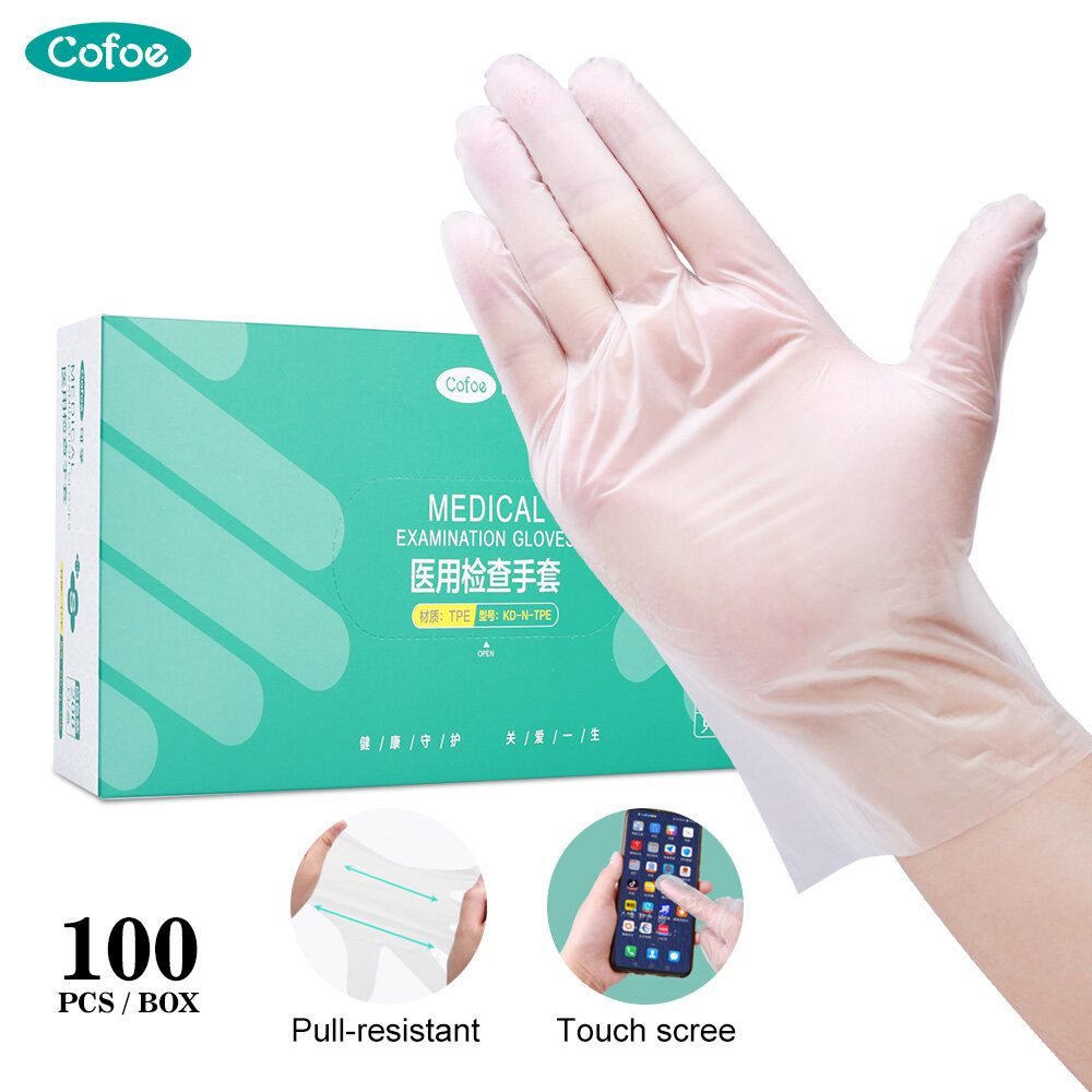 SZG Cofoe 100pcs Medical-grade TPE Examination Gloves Antivirus Powder Free Hand Gloves for Home Hospital Food 1103