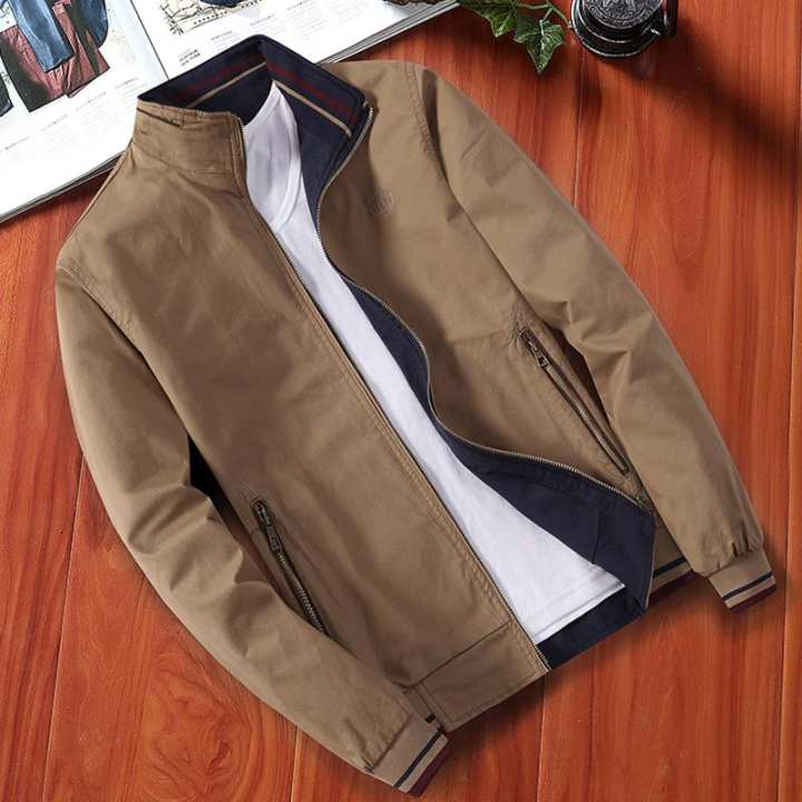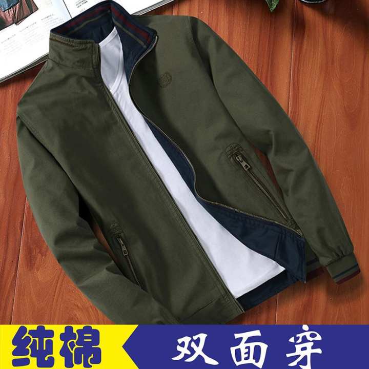 • On both sides can be wear counter selection of cotton fabric feel good and comfortable breathable not from the ball does not fade cotton washed Effect ink recognized in the pass Express Double-sided wear middle-aged men's coat jacket autumn Plus-sized thin cotton jacket shirt casual men's Spring and Autumn outerwear