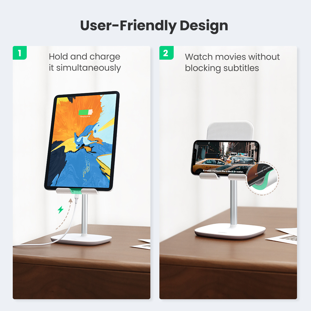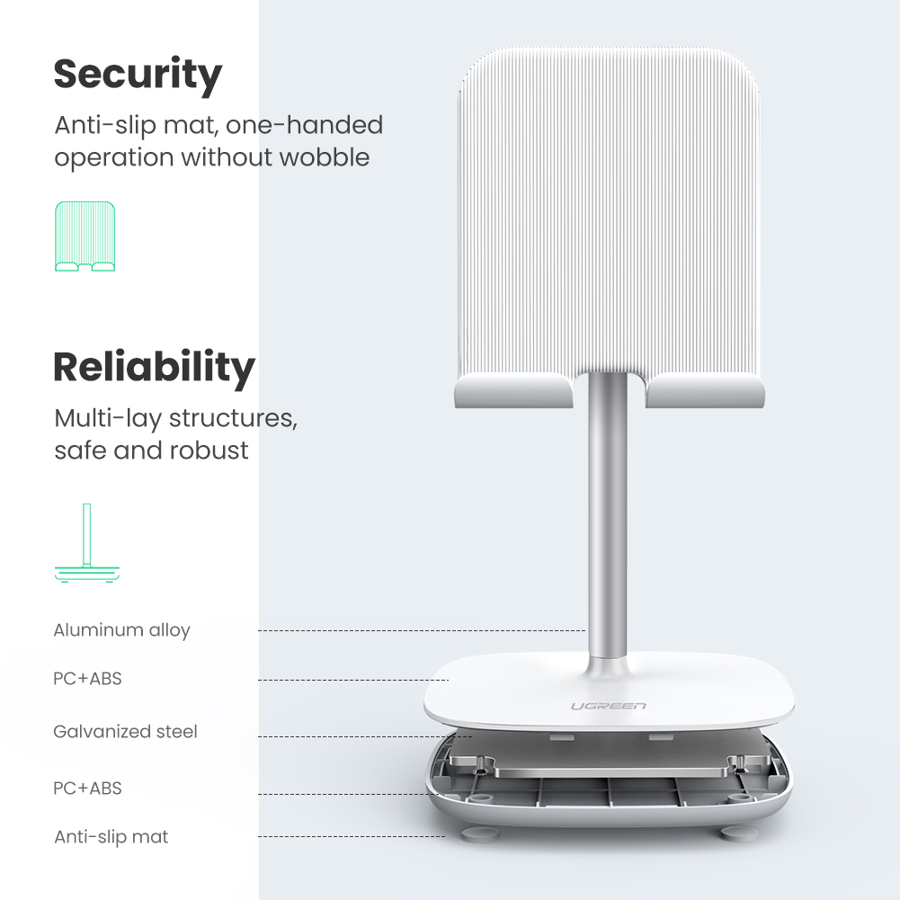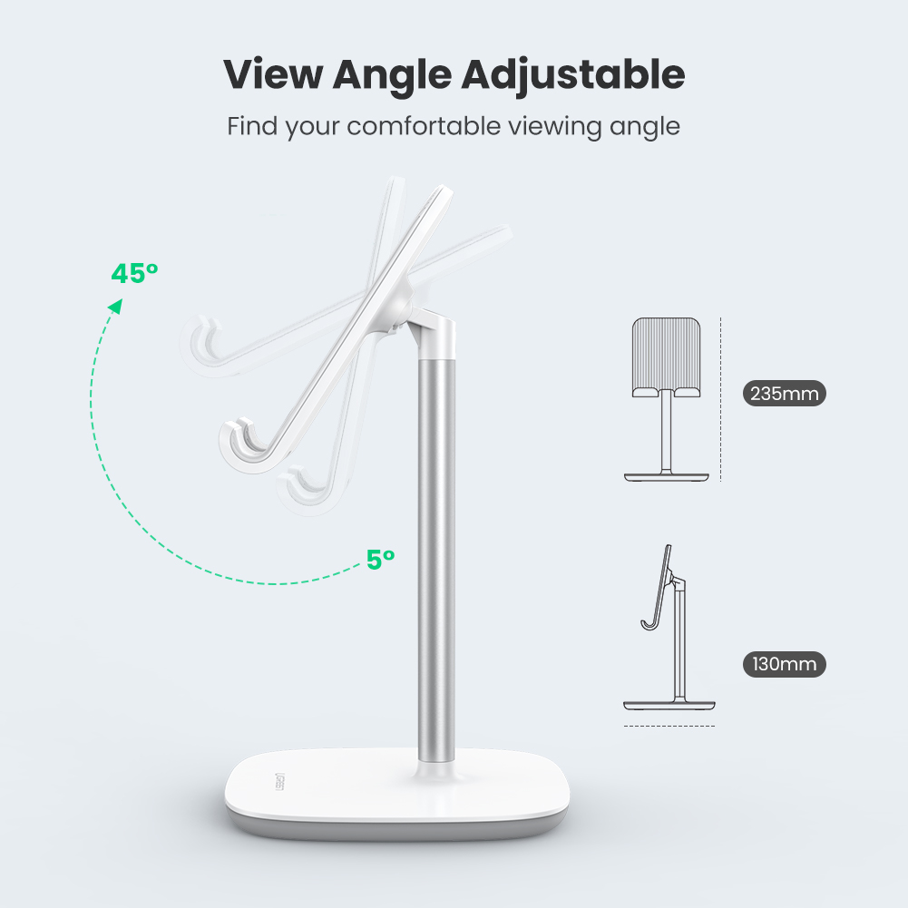 UGREEN stand is an upgraded version with the long aluminum alloy neck to provide you the perfect viewing angle while using a cell phone or tablet.