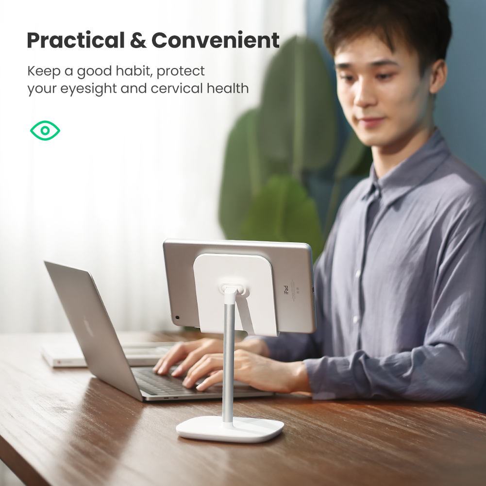 Enjoy a comfortable, custom viewing angle and hands-free convenience with this UGREEN Adjustable tablet stand for desk. The sturdy and solid stand keeps your tablets or smartphones right where you want.