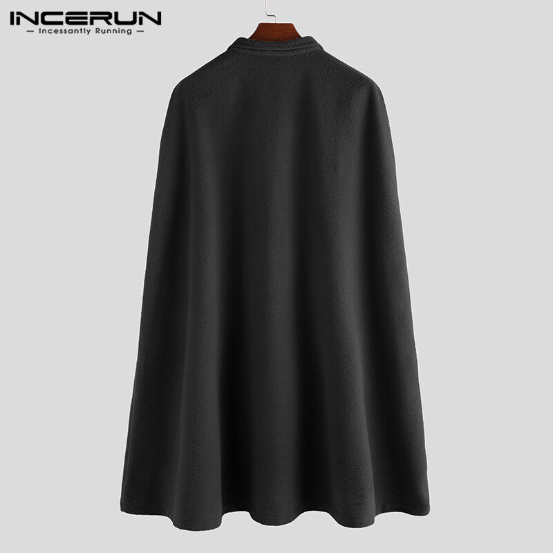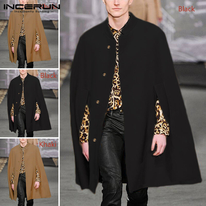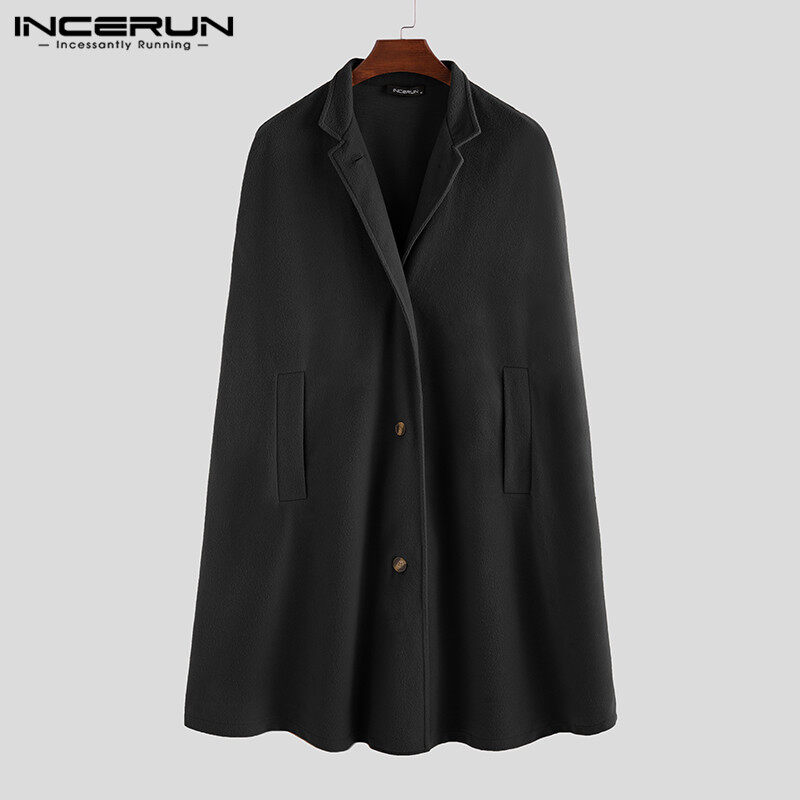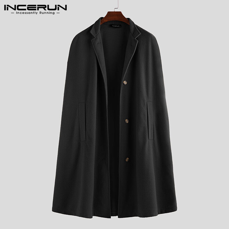 INCERUN Mens Poncho Cape Coat Cloak Single Breasted Autumn Outwear Coat Overcoat (Winter Style)