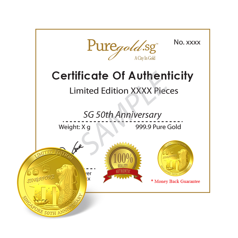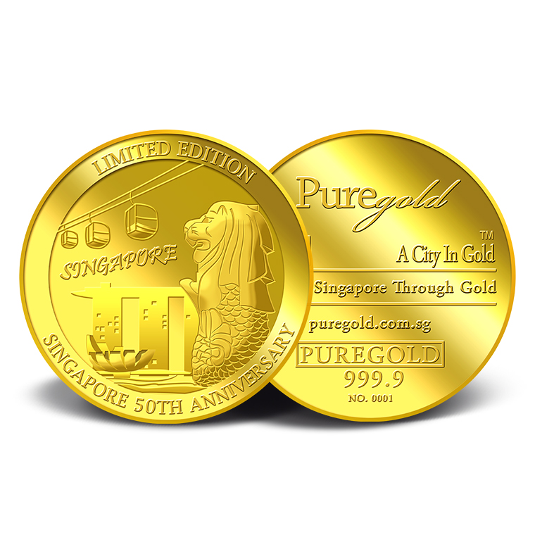 Puregold SINGAPORE COMMEMORATIVE COLLECTION SG50 Anniversary 5G Singapore Merlion Cable Car Gold Medallion 999.9