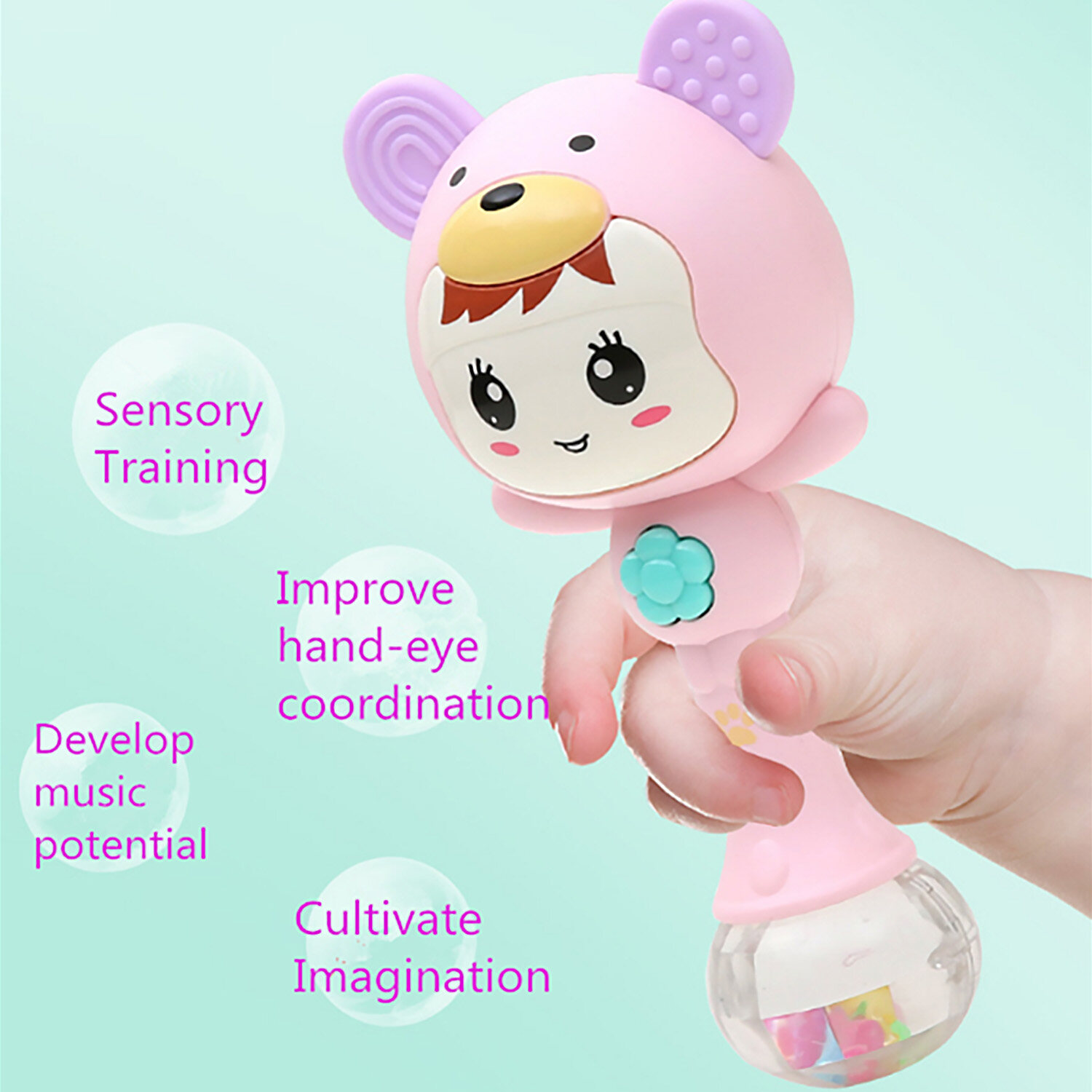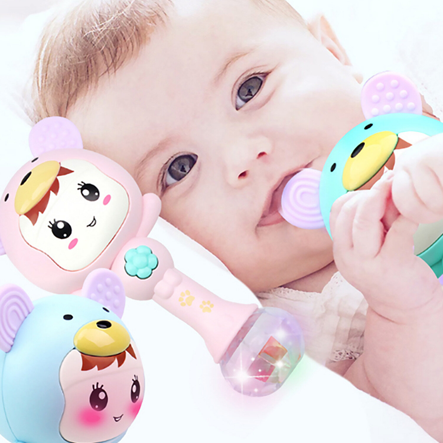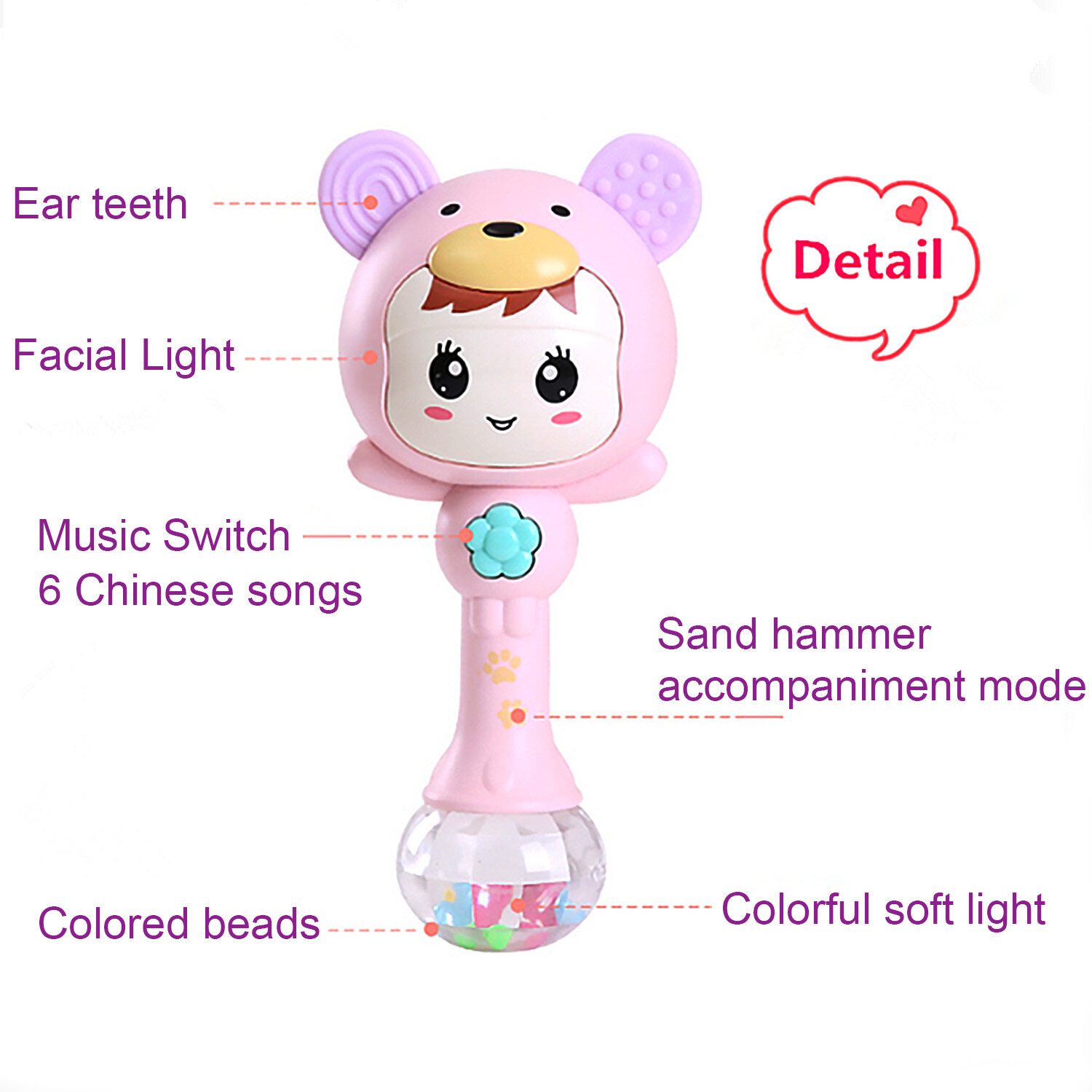 Newborn Early Learning Toy Infant Kids Baby Cartoon Musical Rattle Teether Stick for 0-1 Year Toddlers Random Colors