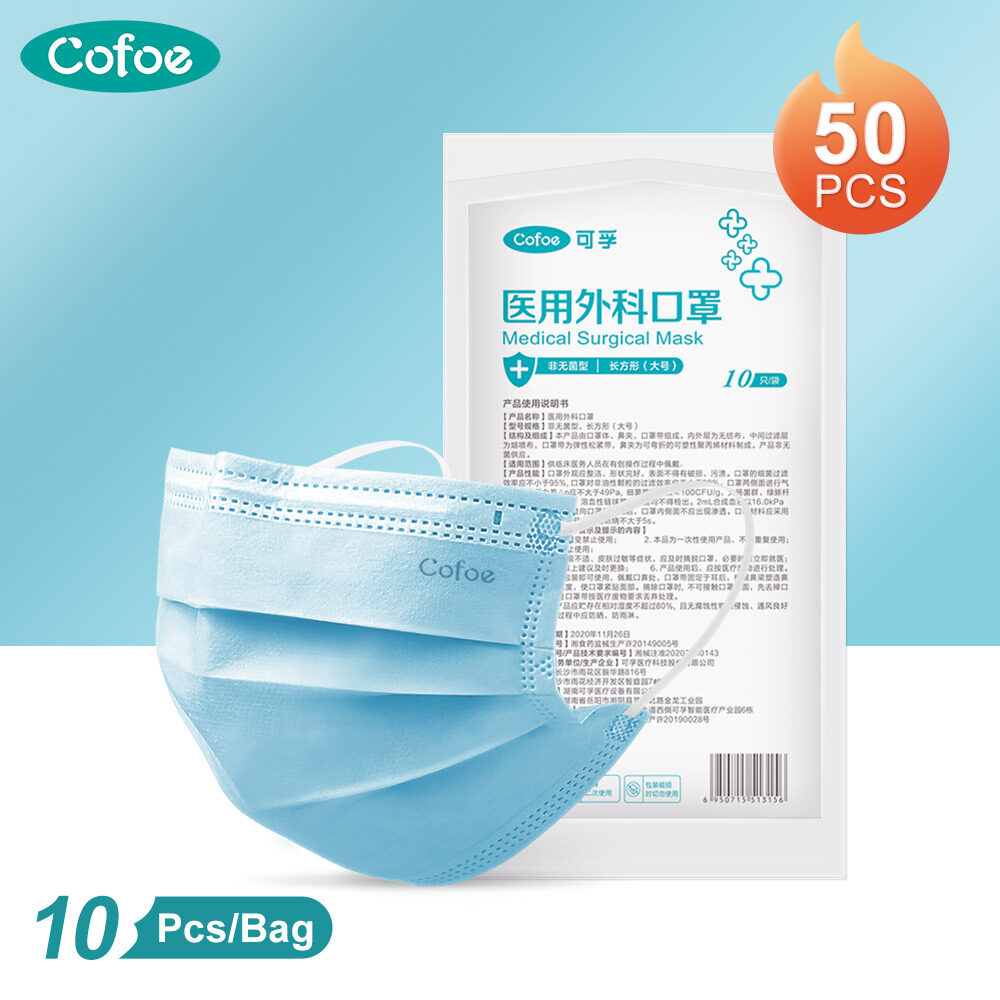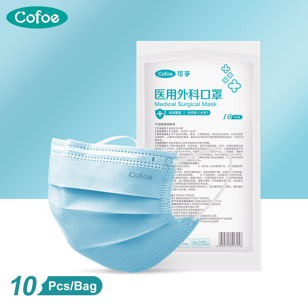Cofoe 3 Ply 10pcs Disposable Medical Face Mask with Elastic Earloop Dustproof Anti-fog Protective Cover 3 Layer Masks Facemask for Adult