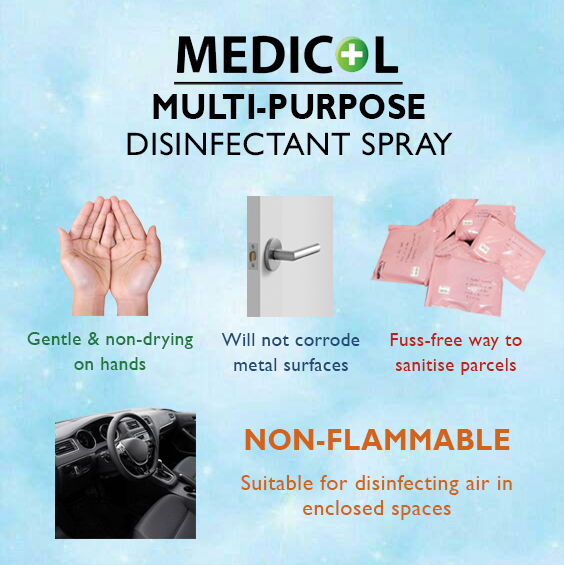 Non alcoholMEDICOL Hand Sanitiser Disinfectant Spray (100ml x 4) Travel Size Hand Sanitizer Alcohol Free l Non Toxic Safe on flight
